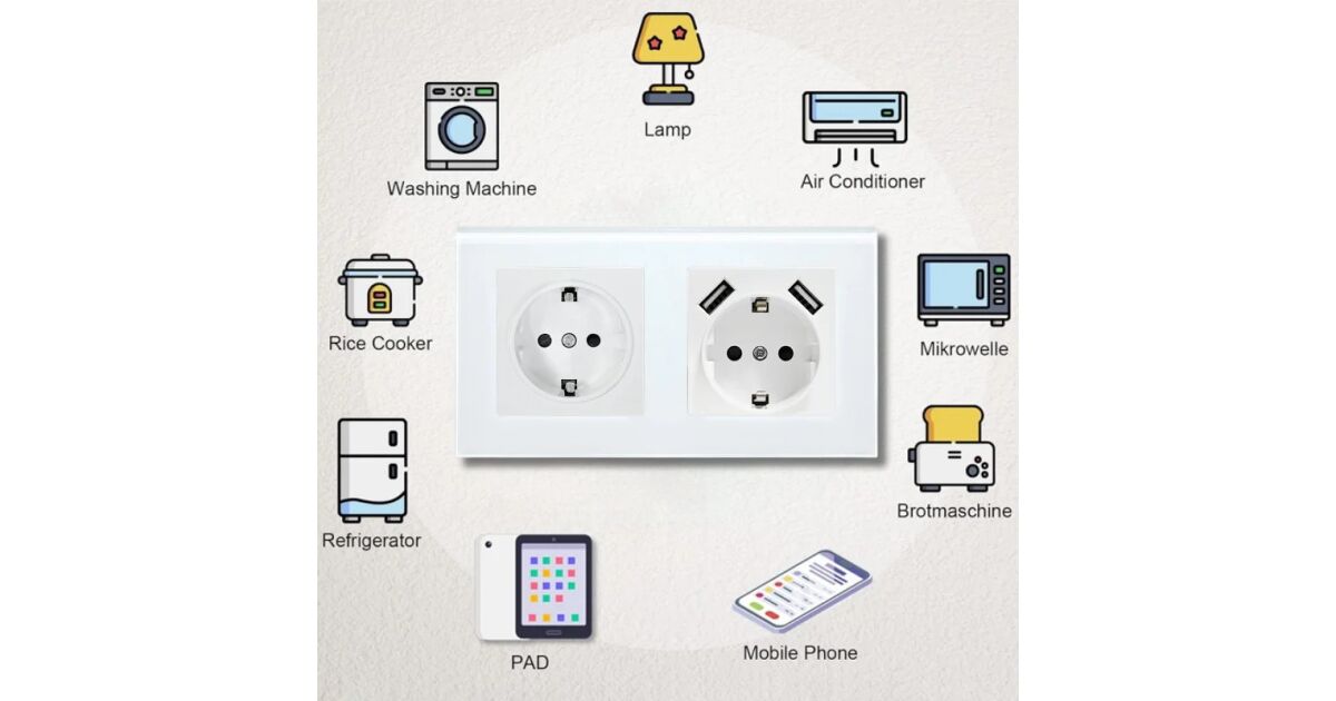 Odśwież swój dom lub biuro tym nowoczesnym, podwójnym gniazdkiem, które oferuje również 2 praktyczne porty USB-A! Hartowana szklana ramka zapewnia elegancki wygląd, a wbudowane funkcje bezpieczeństwa chronią Ciebie i Twoją rodzinę.