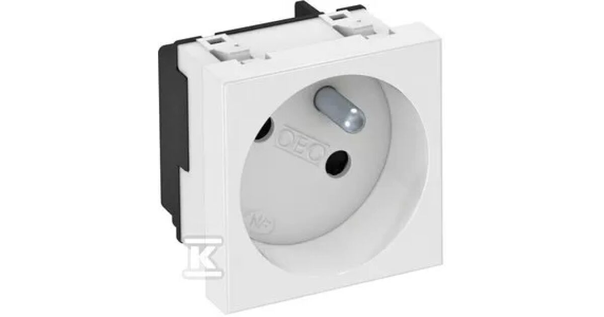 Gniazdo pojedyncze 33°, NF, czysta biel typ STD-F3 RW1 o numerze katalogowym 6120222 w kategorii Gniazda systemu 45x45, Osprzęt biurowy, akcesoria. Produkt wyprodukowany przez markę OBO BETTERMANN, seria MODUL 45.