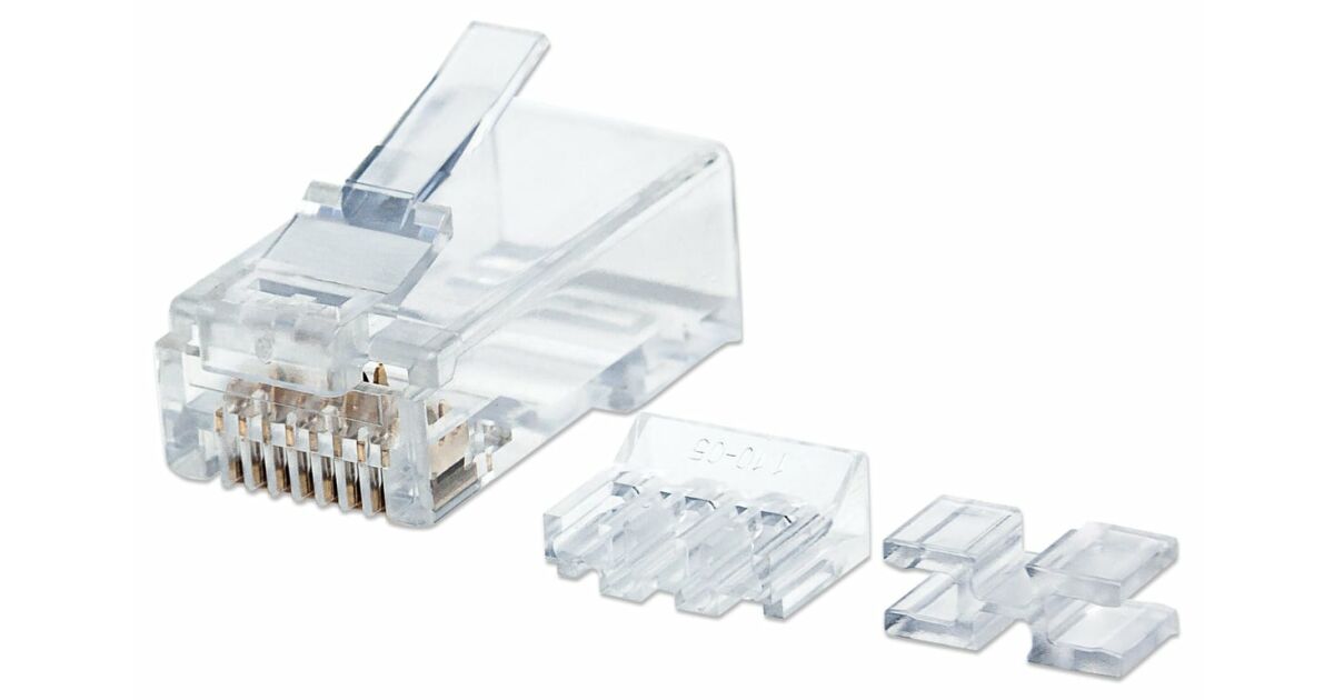 Wtyk modularny RJ45 Cat6A Piny pokrywane 15 µm złoceniem 2-ząbkowe piny na linkę Profil odpowiedni dla okrągłych kabli Do zastosowania na nieekranowaną skrętką Standardowe wzornictwo 8P8C, do połączeń w sieciach RJ45 Pełna zgodność z kablami kategorii 3, 4, 5, 5e, 6 oraz 6A 80 sztuk Kolor: Przezroczysty;Rodzaj: Wtyki i końcówki