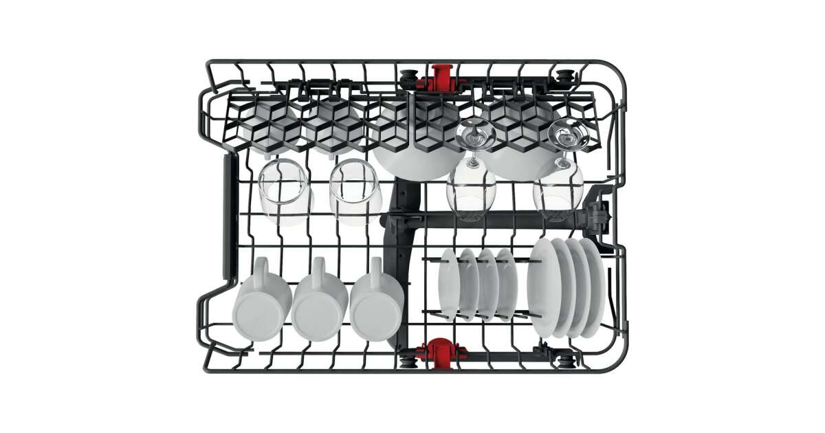 - Regulowana wysokość górnego kosza: Maksymalna elastyczność w umieszczaniu naczyń.