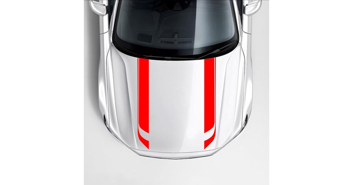 Set 2 stickere autoadezive Tuning, model "Hood Stripes V1", dimensiune 85 x 12 cm, culoare Rosie Descriere