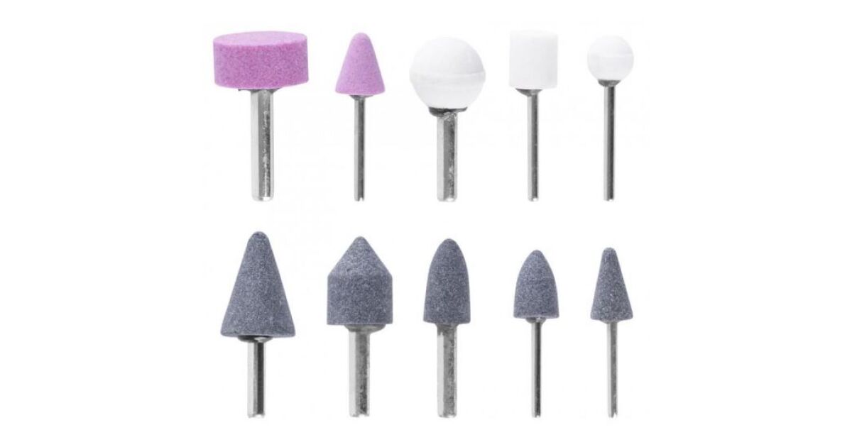 - 💎 10 pietre abrazive: O gamă variată de forme pentru diferite aplicații.