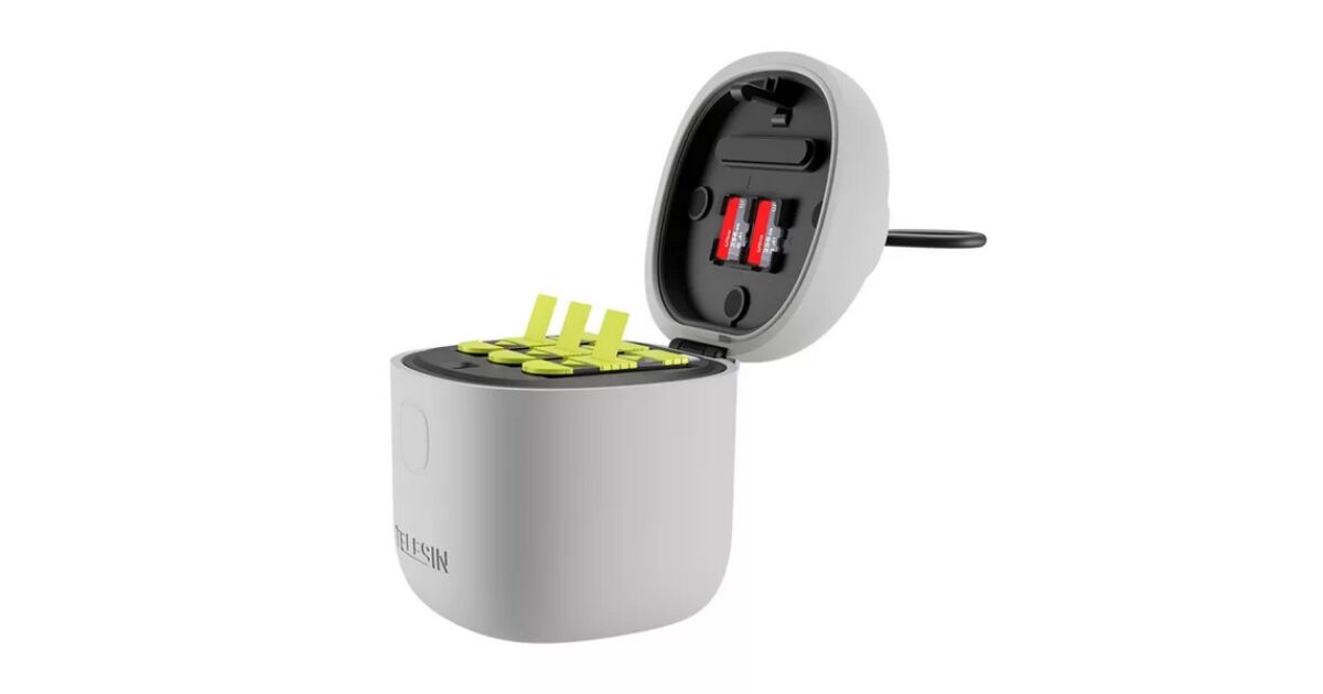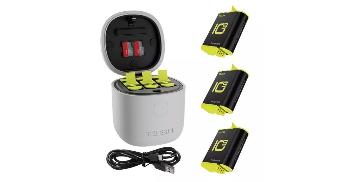 Încărcătorul de baterii și cititorul de carduri GoPro impermeabil Telesin: încarcă 3 baterii simultan 🔋