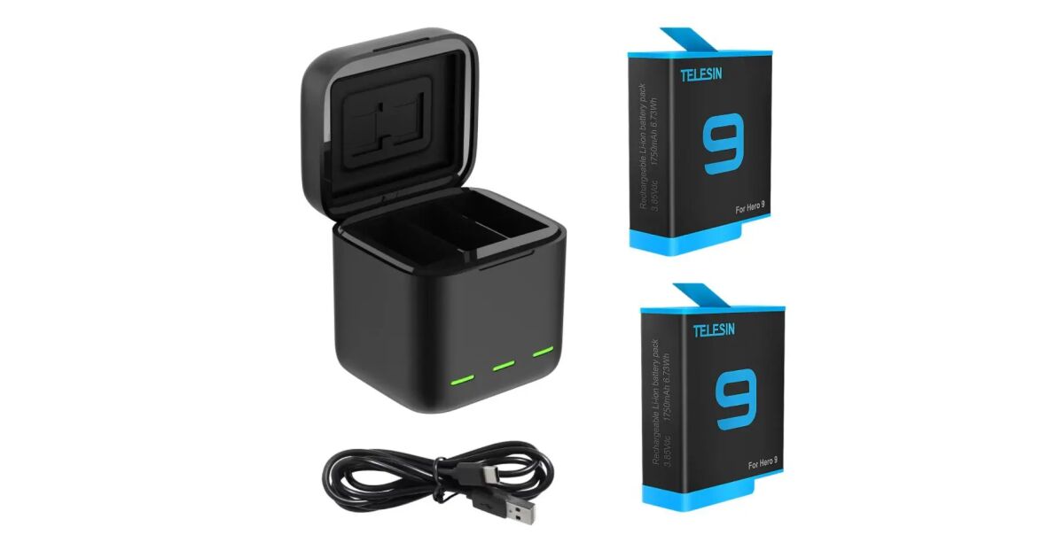 - 🔋 2 acumulatori Telesin: Pachetul include și 2 acumulatori reîncărcabili.