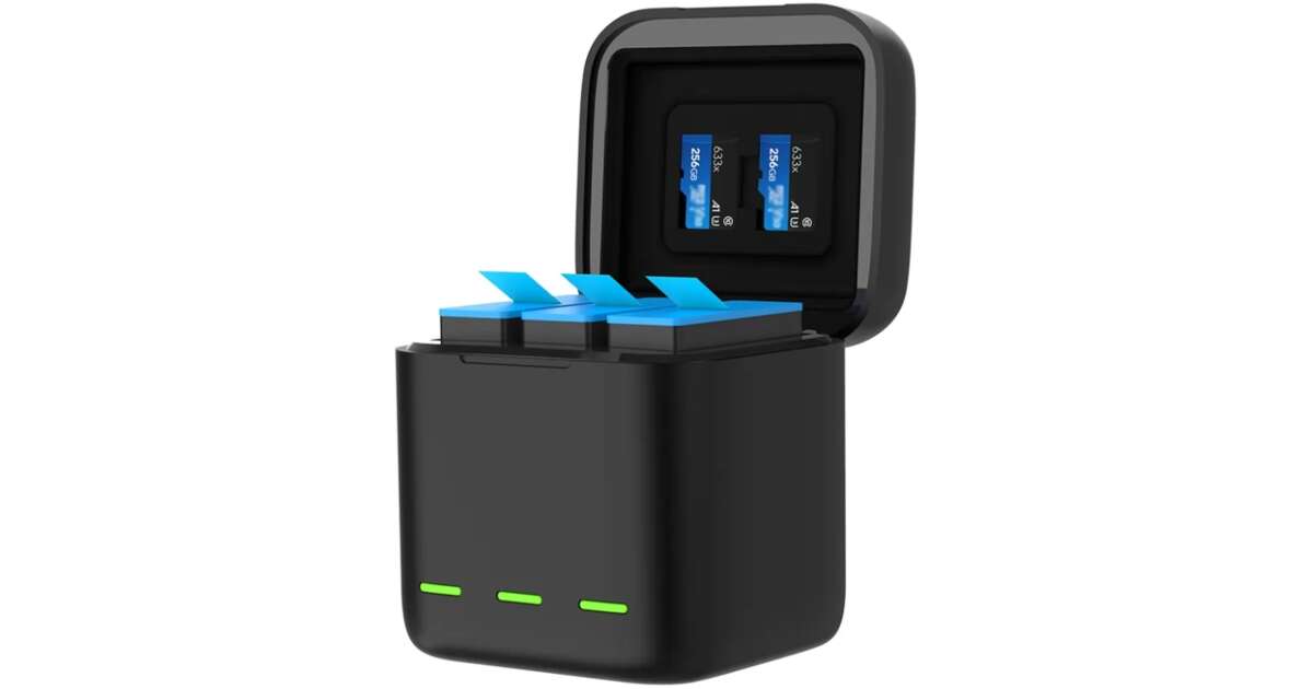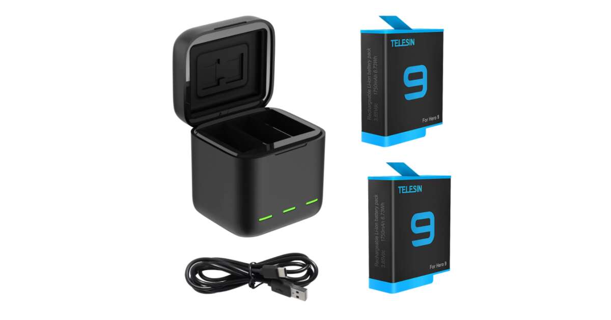 Încărcare rapidă a 3 acumulatori GoPro Hero 9/10 cu această cutie de încărcare Telesin compactă și ușoară ⚡. Datorită încărcării rapide de 2,4 A, acumulatorii pot fi încărcați în doar 2,5 ore. Indicatorii LED încorporați arată starea de încărcare, astfel încât vei ști mereu când camerele tale sunt gata.