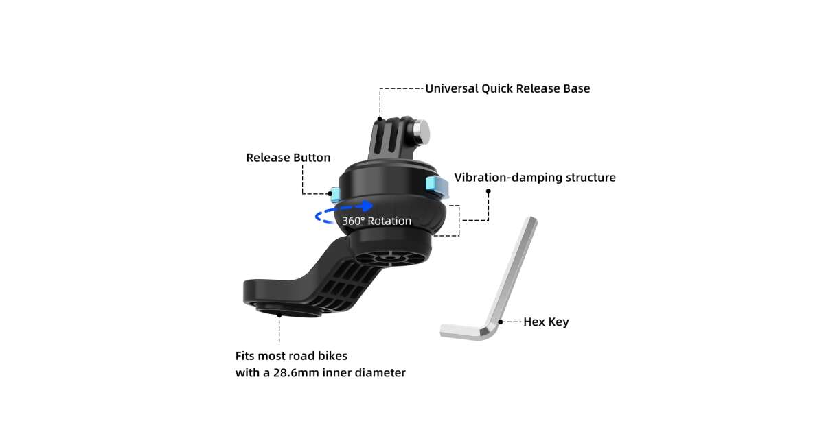 - Compatibilitate: Se potrivește bicicletelor cu șurub de ghidon intern de 28,6 mm (compatibil cu GoPro 13, GoPro 12, DJI Action 5 Pro, Insta 360 X4 și multe alte modele).