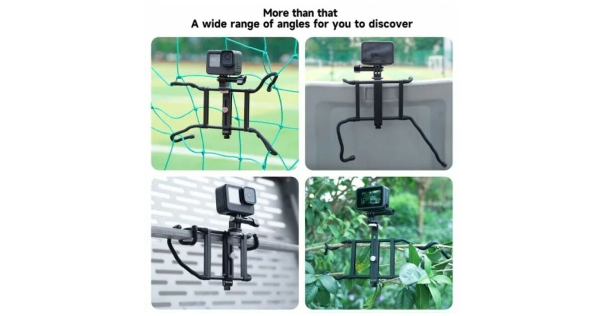 Vrei să imortalizezi cele mai tari momente sportive, dar ai nevoie de mâini libere? Suportul universal de montare pe gard TELESIN este soluția perfectă! Îl poți fixa cu ușurință pe aproape orice tip de plasă, balustradă sau chiar pe o ramură de copac. 🌳