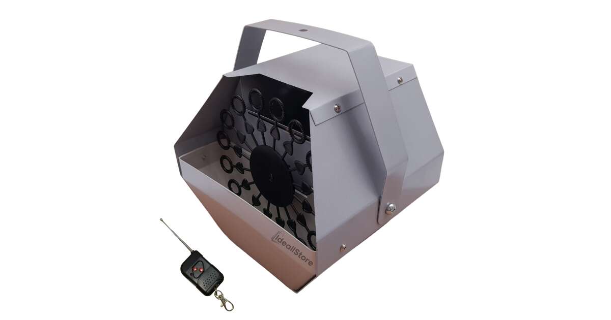 Masina de baloane DEPOX®, Party Bubble, otel inoxidabil, 1 litru, argintie, telecomanda inclusa Descriere