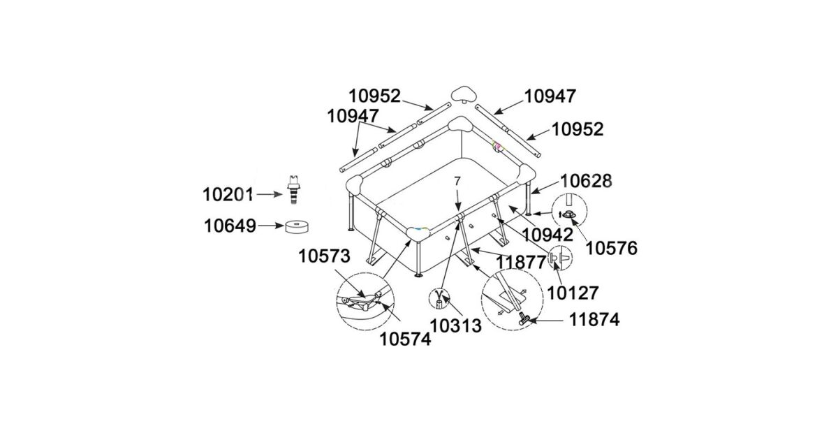 Element cadru orizontal pentru piscina INTEX (A/C), pentru piscine cu cadru metalic de 220 x 150 x 60 cm (10947)