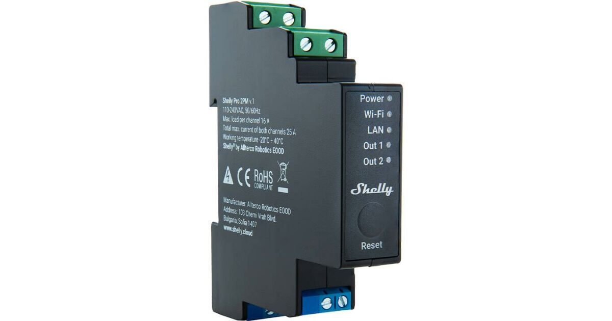 Acest releu inteligent Shelly PRO 2PM, care se montează pe șină DIN, este soluția perfectă pentru automatizarea casei sau a afacerii tale. Poate controla două circuite independente, având și funcție de măsurare a consumului, astfel încât să-ți poți monitoriza cu exactitate consumul de energie.