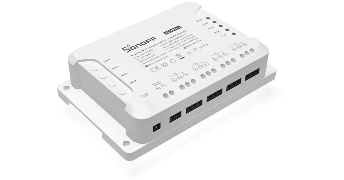 Acest releu comutator inteligent Sonoff 4CH PRO R3 îți permite să controlezi simultan și independent 4 circuite prin WiFi și semnale radio de 433MHz. Este o soluție ideală pentru a controla iluminatul casei, aparatele electrice, sistemele de irigații, porțile și jaluzelele. Utilizatorii subliniază raportul excelent preț-calitate. 💰
