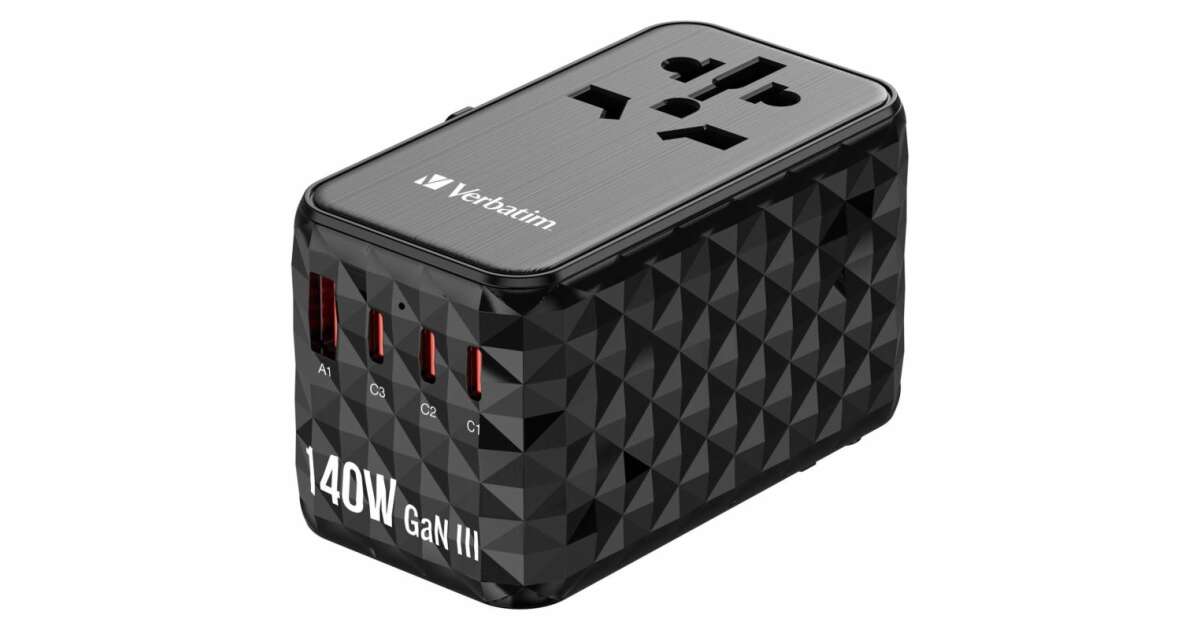 Adaptor universal de călătorie Verbatim GaN III 140W: Încarcă-ți dispozitivele oriunde în lume 🌍