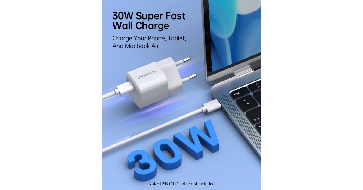 Nu mai pierde timpul cu încărcarea lentă! Alege încărcătorul rapid Choetech 30W GaN USB-C PD și bucură-te de avantajele încărcării rapide și eficiente! 👍