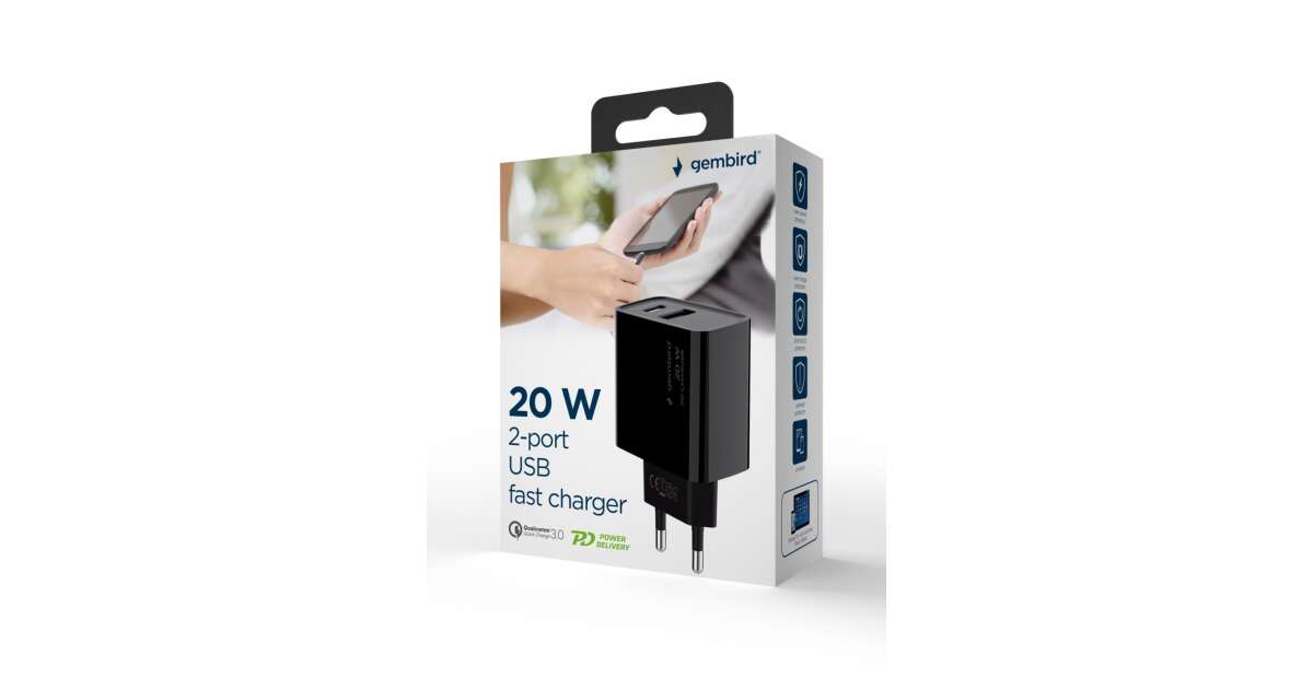 Încărcător de rețea Gembird 20W USB-C/USB-A: Viteză de încărcare rapidă ⚡