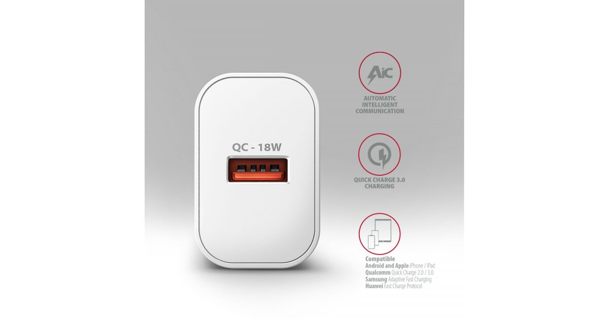 Încărcător Axagon AXAGON ACU-QC18W, încărcător c.a. 18W, 1x port USB-A, QC3.0/AFC/Apple, alb