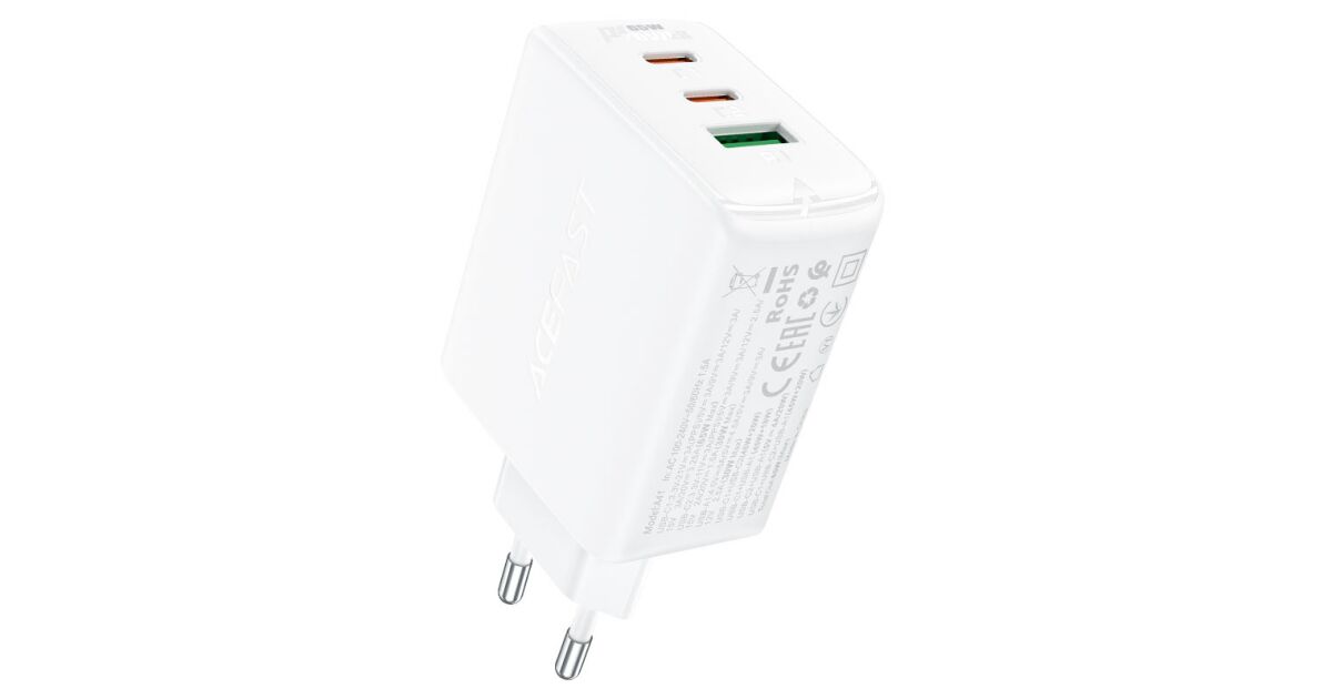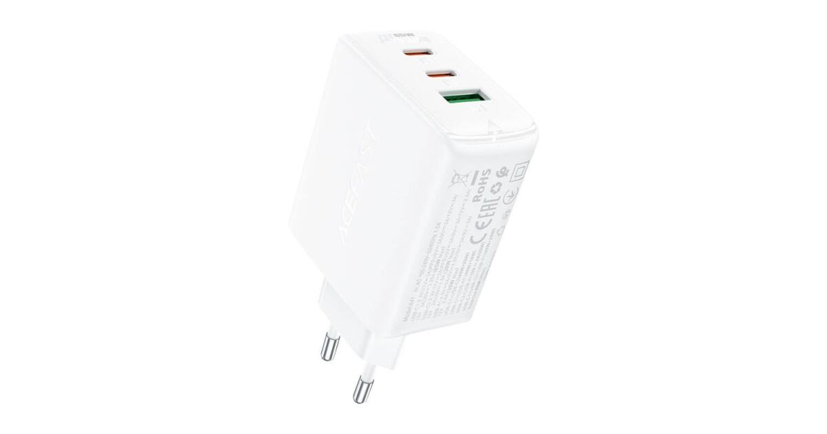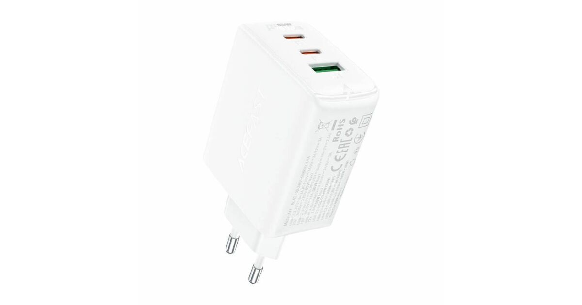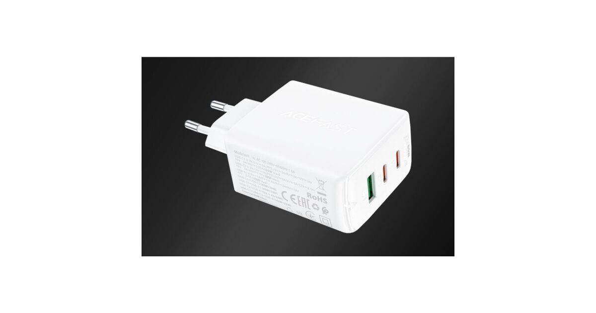 Incarcator de perete Acefast A41, 2x USB-C + USB, GaN 65W alb