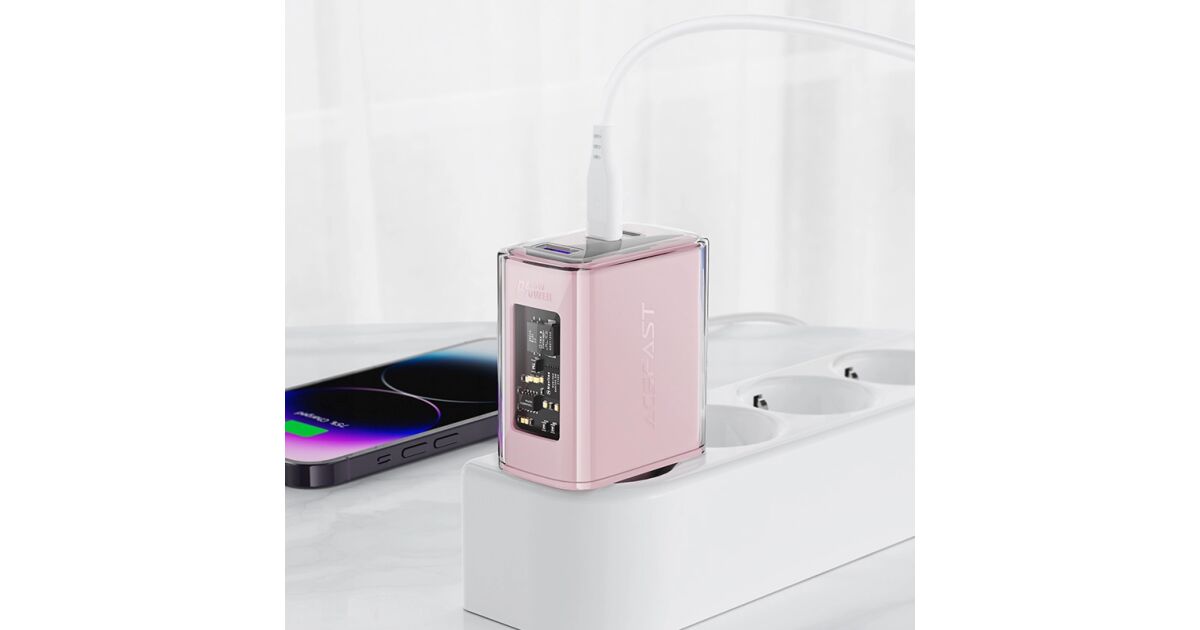Acumulator pentru Priza, 2 X USB-C, USB, GaN, PD65W - Acesfast (A45) - Cherry Blossom Descriere