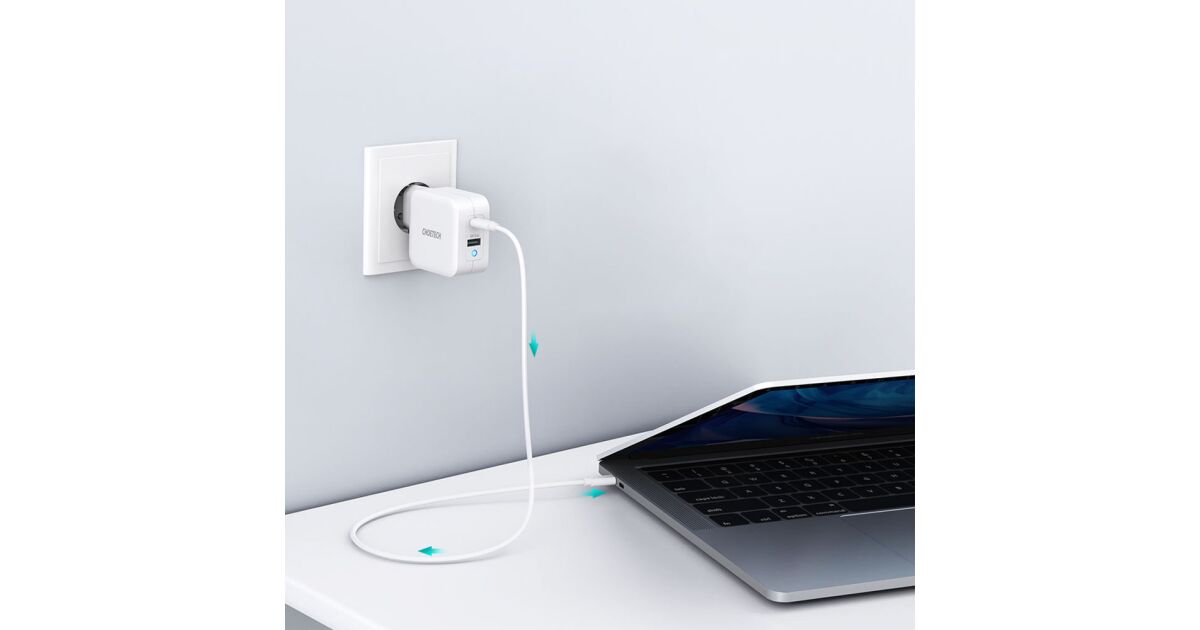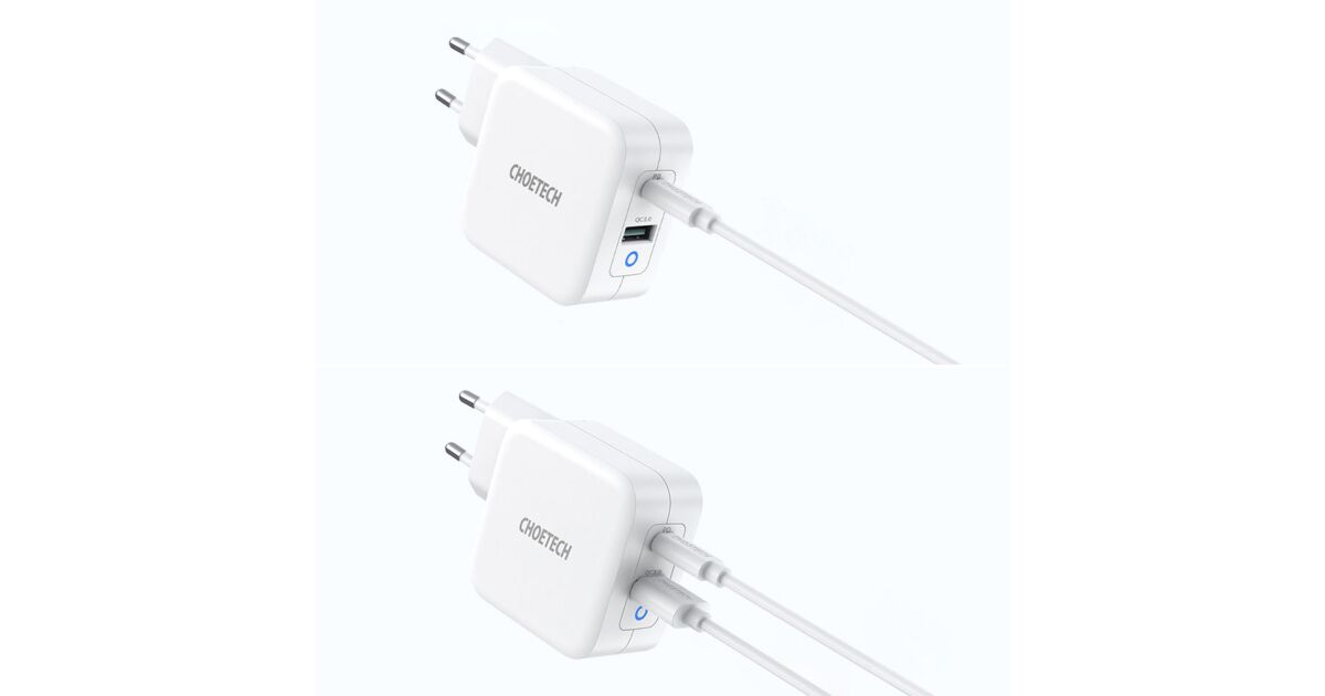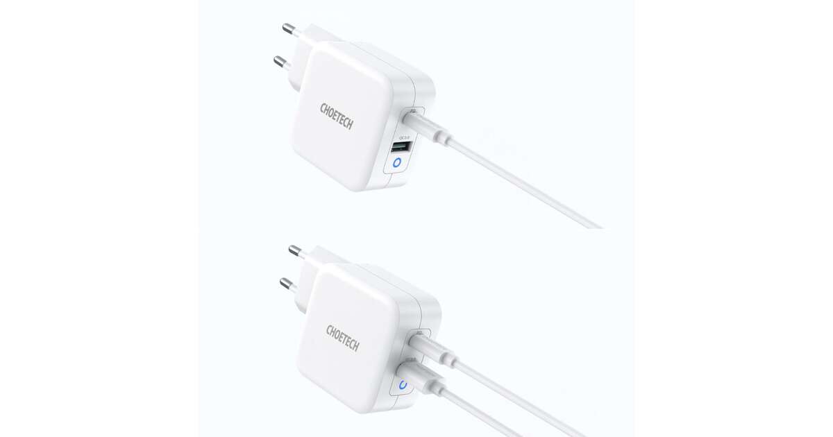 Acest încărcător compact, alb, Choetech PD8002 poate încărca două dispozitive simultan, cu o putere de până la 63W! Datorită tehnologiei GaN integrate, procesul de încărcare este extrem de eficient și rapid. Este ideal pentru laptopuri, tablete și smartphone-uri.