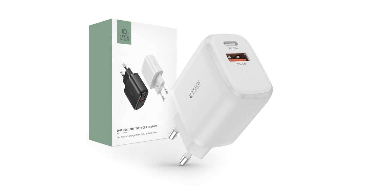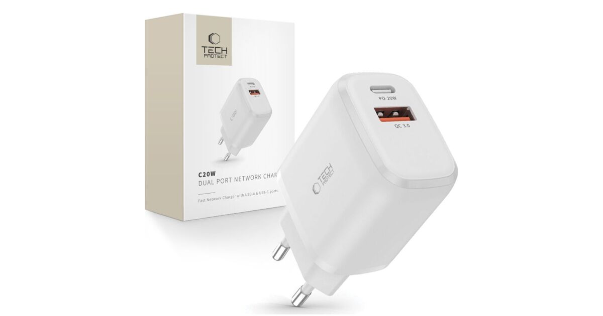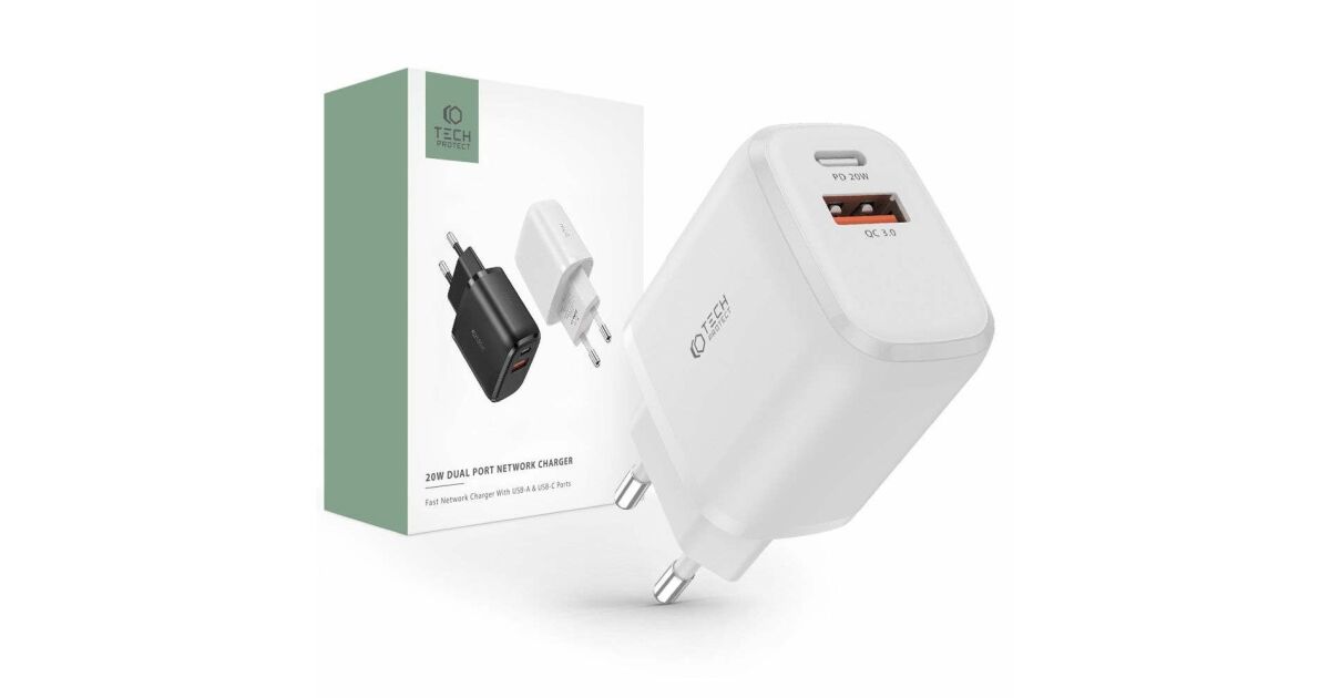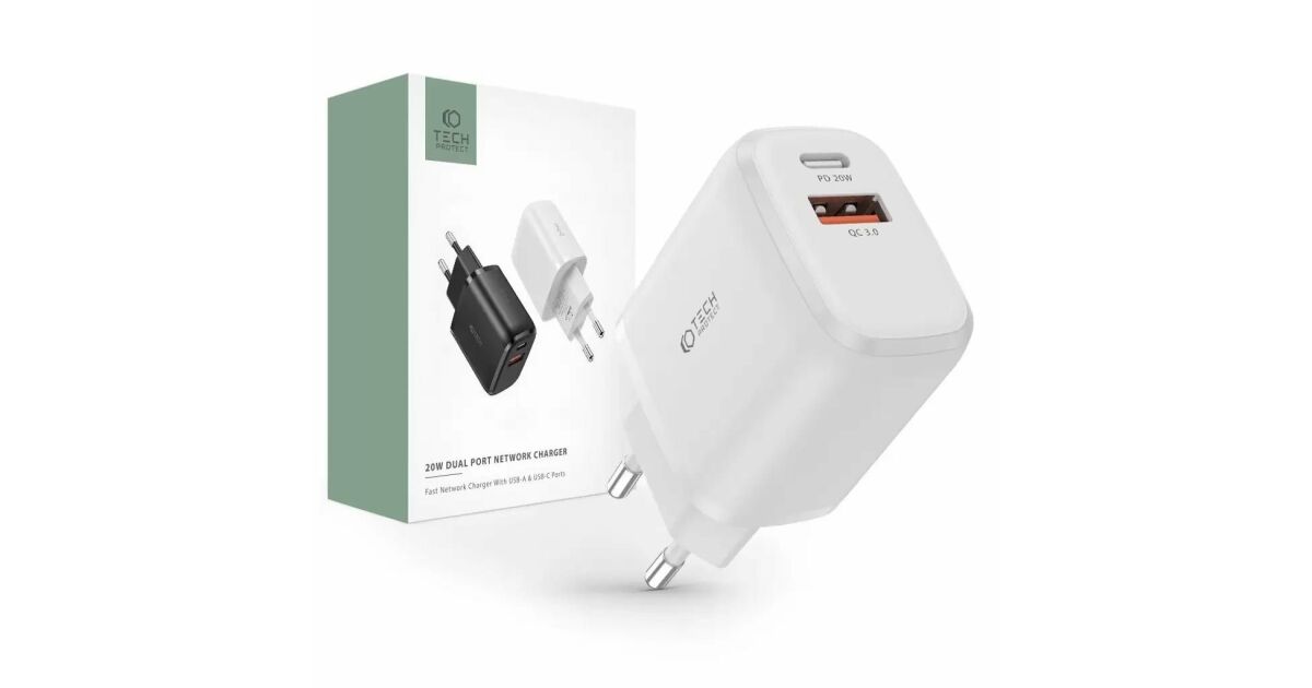 Încărcător de rețea dual USB/USB-C TECH-PROTECT C20W: Încărcare rapidă și eficientă ⚡️