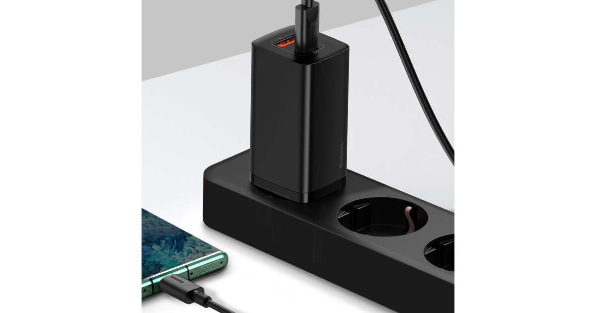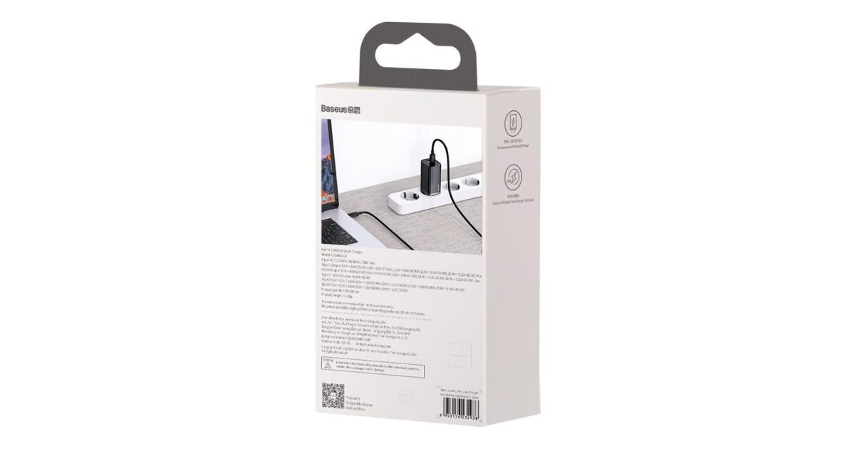 Acest încărcător compact Baseus GaN2 Lite poate încărca simultan două dispozitive, prin porturile USB-C și USB. Puterea maximă de 65W și suportul pentru mai multe tehnologii de încărcare rapidă (Power Delivery 3.0, Samsung Adaptive Fast Charge, Qualcomm Quick Charge 4.0, Huawei SCP) permit încărcarea ultra-rapidă a telefoanelor, tabletelor, laptopului și altor dispozitive. ⚡