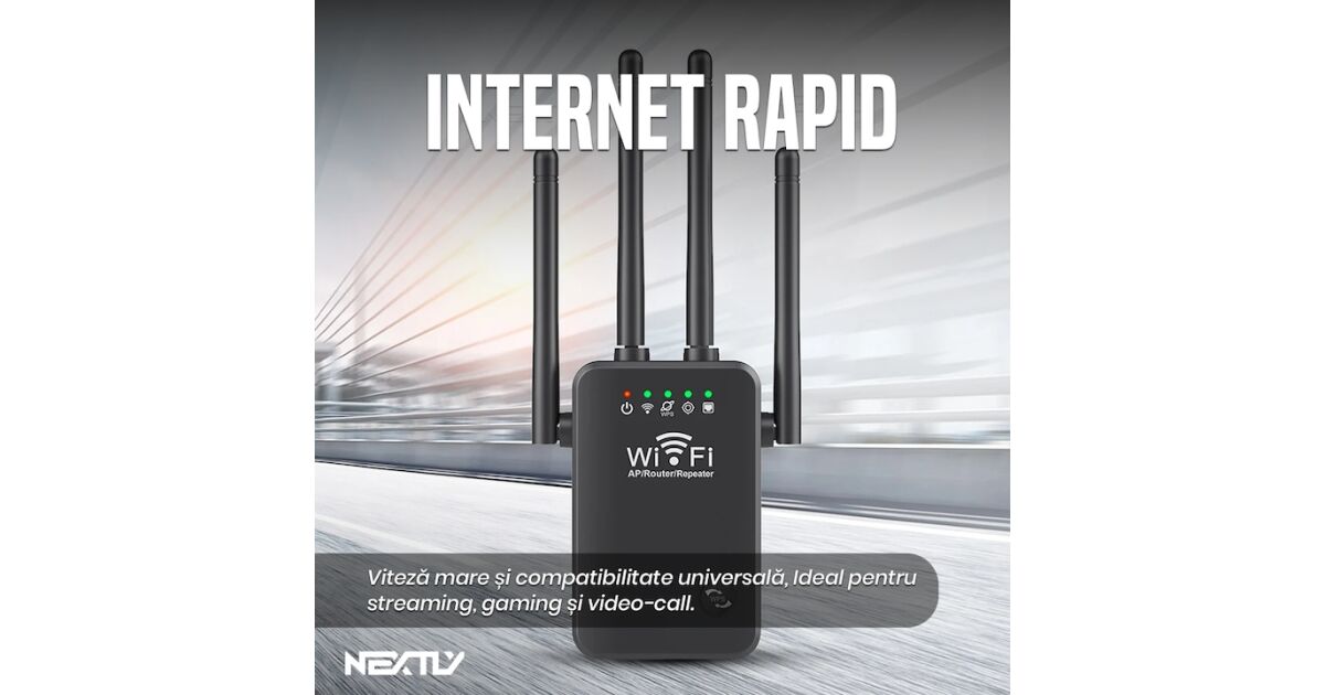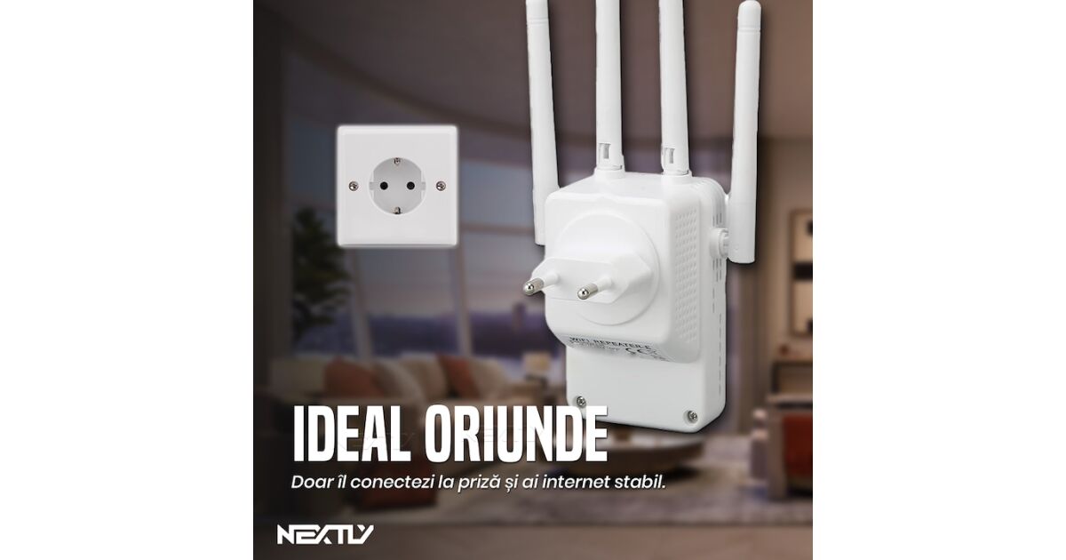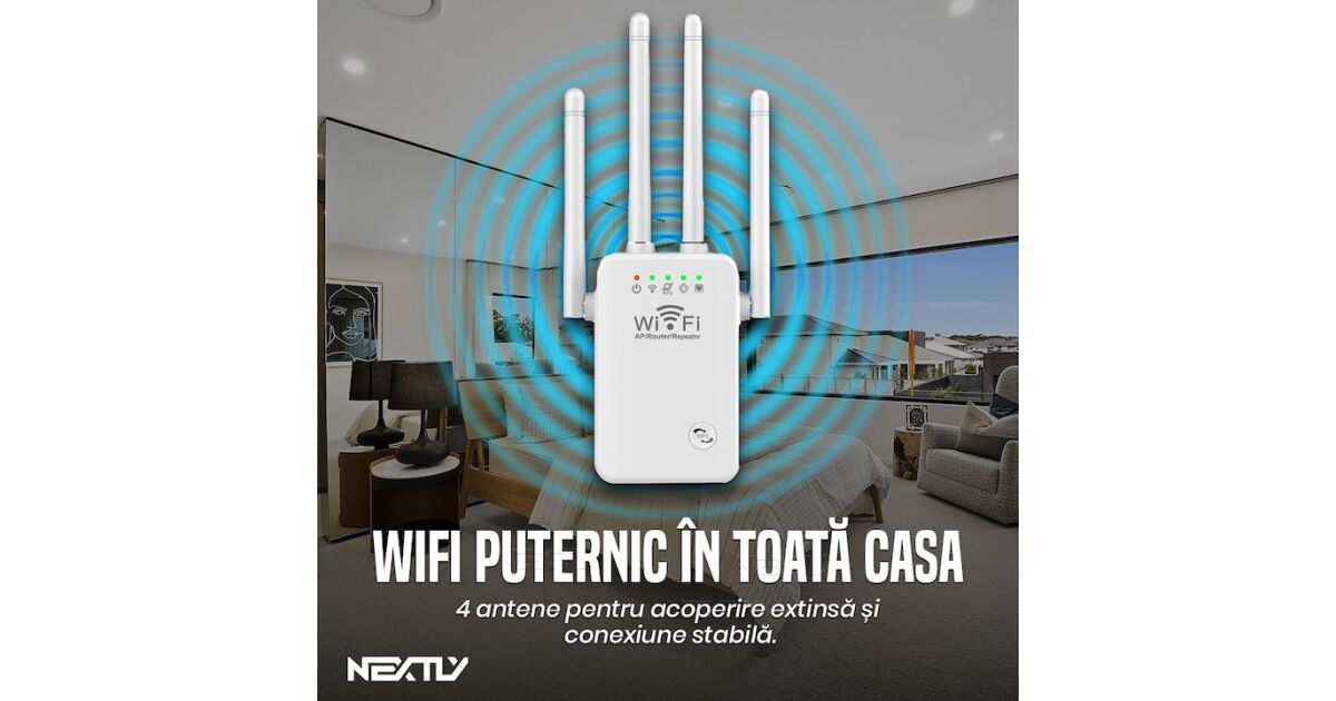 Router Wi-Fi și amplificator de semnal 3 în 1 NEXTLY: Internet stabil oriunde! 🚀