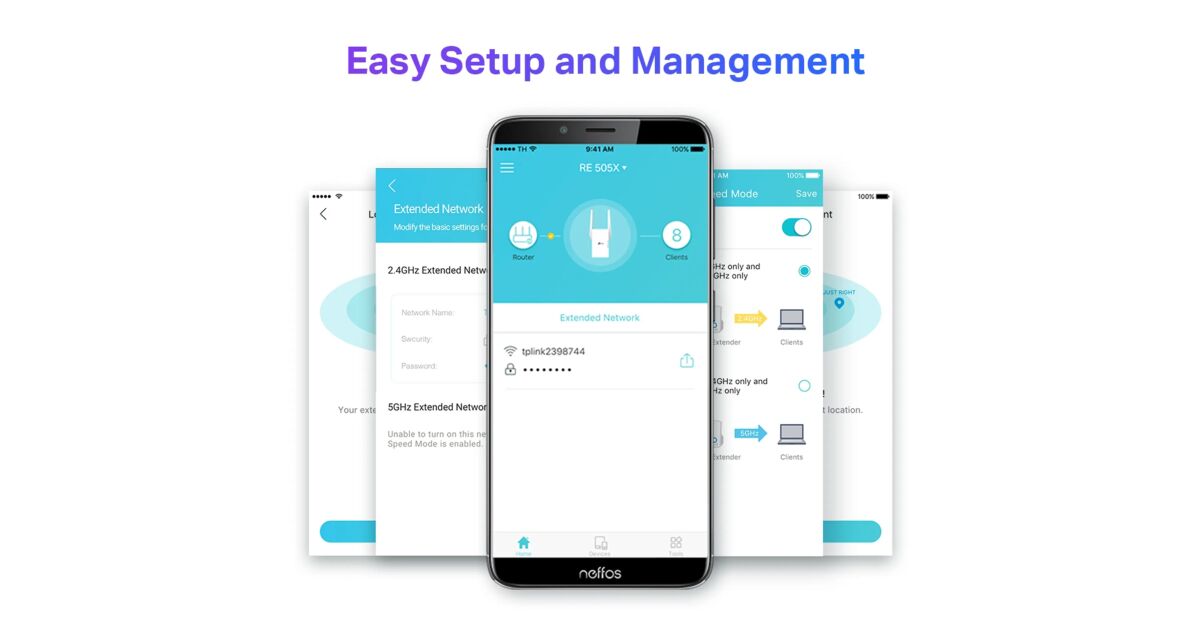 Instalare și utilizare simplă: TP-Link RE505X se instalează și se utilizează foarte ușor, astfel încât să te poți bucura imediat de o conexiune la internet mai rapidă și mai stabilă. Cu ajutorul aplicației Tether, poți configura și monitoriza cu ușurință extenderul.