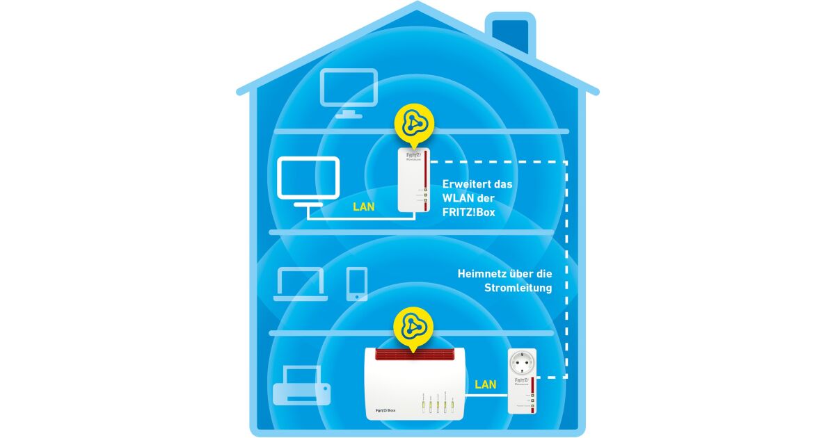 Acest set FRITZ!Powerline 1260E WLAN revoluționează conexiunea la internet de acasă. Folosind rețeaua electrică, acesta oferă Wi-Fi rapid și stabil în fiecare cameră, chiar și acolo unde semnalul routerului este slab.