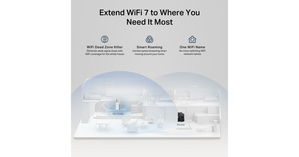 Tp-link extensor de rază wireless dual band be3600 wifi 7, re235be RE235BE Descriere