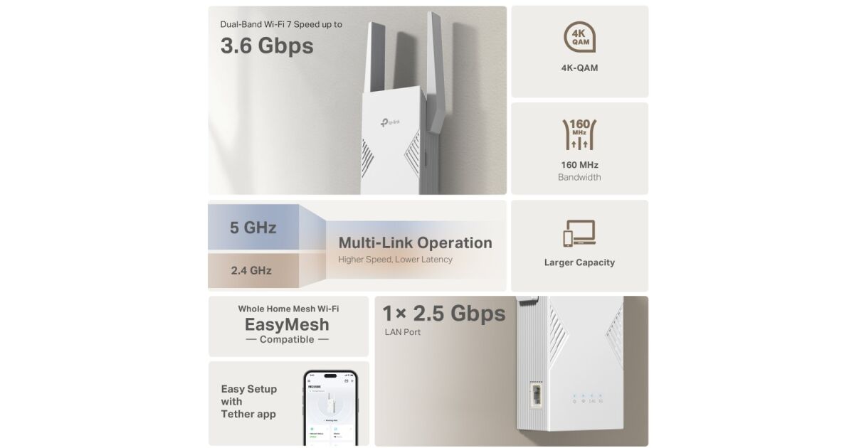 Extensor de Rază Wireless TP-Link BE3600 Dual Band WiFi 7, RE235BE: Amplifică-ți acoperirea WiFi! 🚀