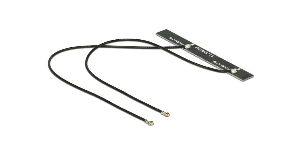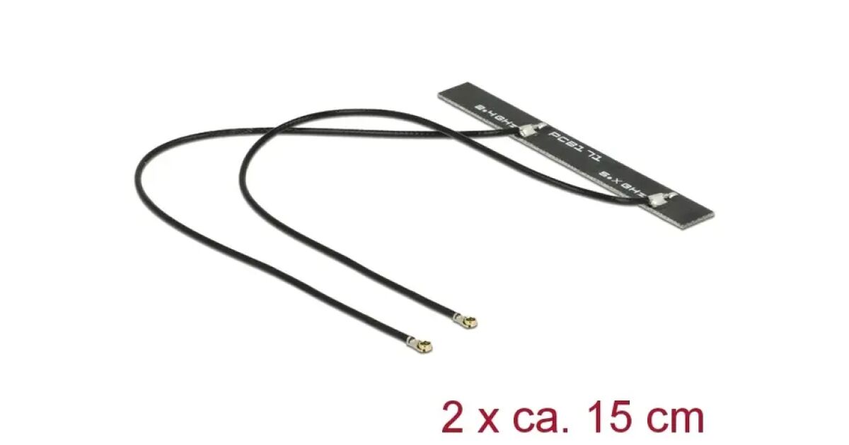 Delock WLAN Twin Antena 2 x MHF IV /HSC MXHP32 compatibil cu fișa 802.11 ac/a/h/b/g/n 5 dBi 150 mm PCB Descriere