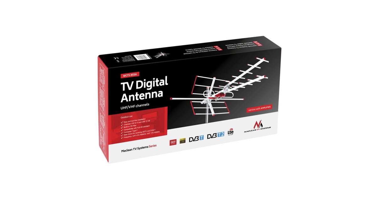 Antena TV DVB-T/T2 H.265 HEVC Maclean MCTV-855A Combo extern UHF VHF Active Max 100dBµV, Filtru LTE