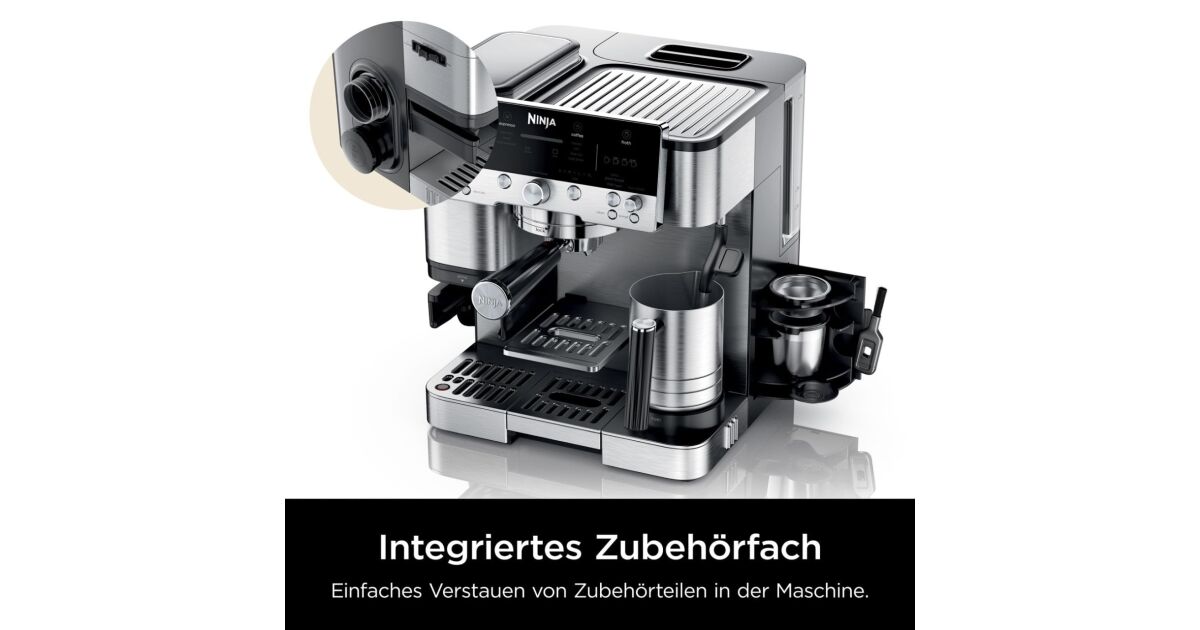 Aparat de cafea Ninja Luxe Premier 3-in-1 cu rasnita si spumant pentru Latte, Cappuccino, Cold Brew si Espresso, usor de utilizat, 4 presetari pentru spumare, mufa UE, argintiu, ES601EU Descriere
