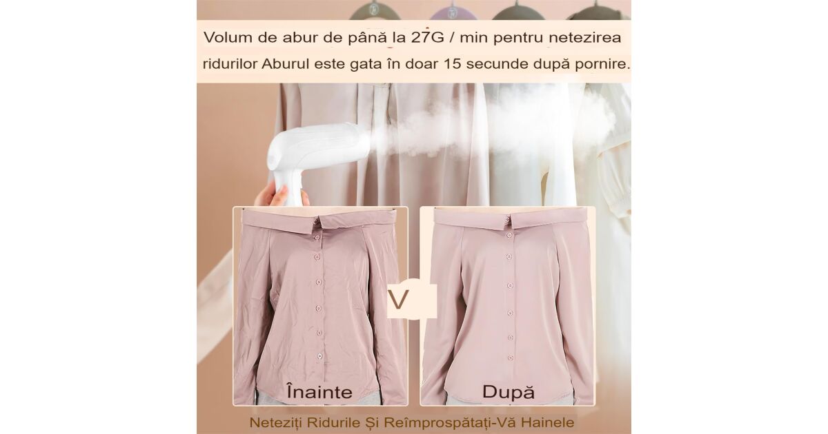 - Abur puternic: Cu o putere a aburului de 27 g/min, îndepărtează cu ușurință chiar și cele mai dificile cute. ⏱️