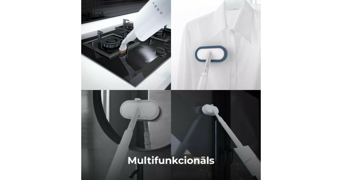 Mop cu abur Aeno ASM0001, 1200 W, 7 duze incluse, timp de functionare de pana la 38 de minute, rezervor de apa detasabil de 380 ml, 110°C abur, 27 g/ min, recipient pentru dezinfectant, 1.3 k opinii