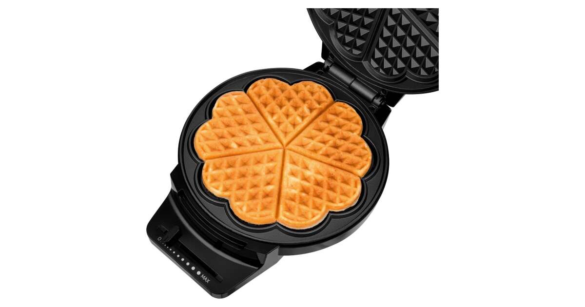 Prepară clătite delicioase în formă de inimă cu aparatul de făcut clătite Sencor SWF1010BK! Acest aparat compact prepară 5 clătite simultan, astfel încât să poți pregăti rapid și ușor micul dejun pentru familie sau o gustare delicioasă pentru prieteni.
