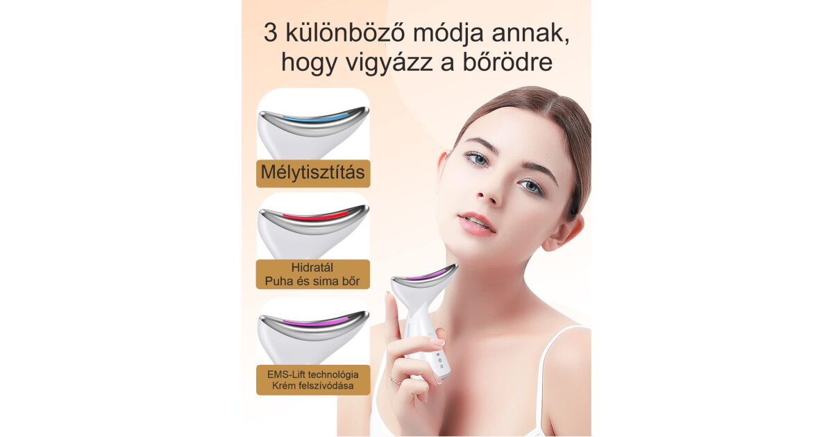 Acest aparat multifuncțional pentru față îți revoluționează rutina de îngrijire a pielii! Cu trei moduri de funcționare, te ajută la hidratare, netezirea ridurilor și menținerea sănătății pielii. Se folosește comod, acasă, și este perfect și pentru îngrijirea pielii gâtului.