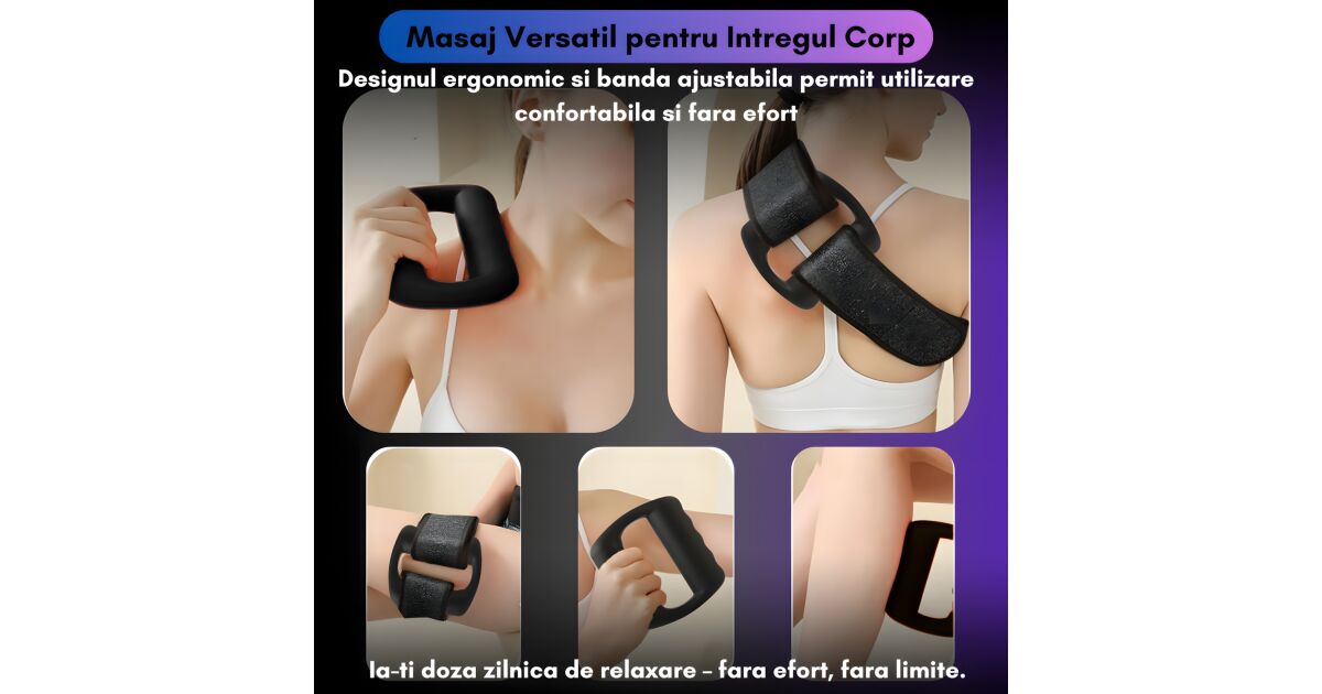 - 🖐️ Utilizare hands-free: Designul ergonomic și cureaua ajustabilă permit utilizarea fără efort, ideal pentru spate, umeri, abdomen, fese sau picioare.