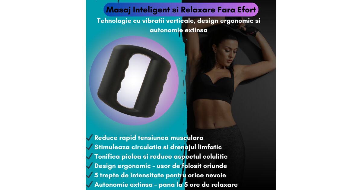 Aparat de Masaj Portabil JustNet® cu Vibratii si Banda Anticelulitica, 5 Niveluri de Intensitate, Autonomie Extinsa 5 ore, Incarcare USB-C, Compact si Ergonomic, Ideal pentru Relaxare si Recu Descriere