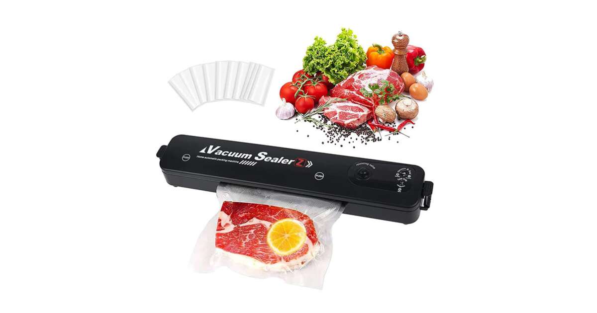 Aparat de vidat si sigilat cu vacuum, NEXTLY, pentru carne, legume, fructe, include 5 pungi pentru vidat, pastreaza prospetimea, negru Descriere