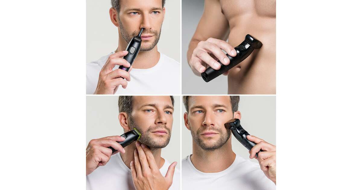 (Conținutul pachetului trebuie descris în detaliu aici, pe baza imaginilor. De exemplu: aparat de tuns, 9 piepteni de reglare a lungimii, perie de curățare, husă de depozitare, cablu USB de încărcare etc.)