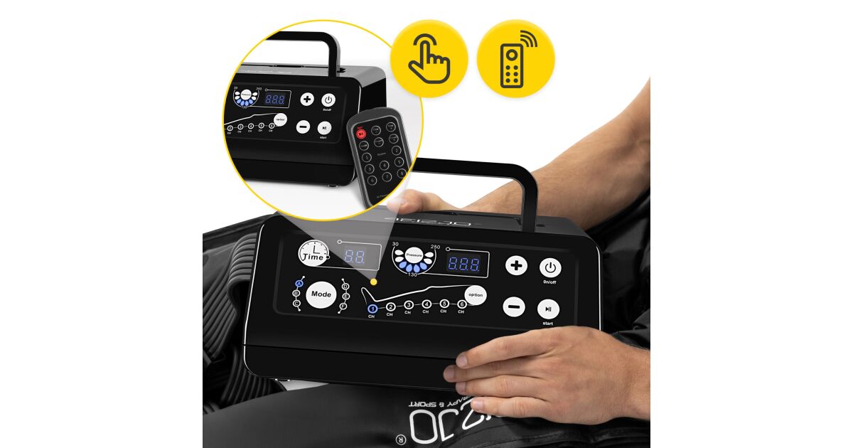 - 6 programe de masaj: Alege programul potrivit pentru nevoile tale specifice (Masaj compresiv preliminar, Masaj intens pentru stimularea fluxului limfatic, Masaj prin compresie indirectă, Masaj prin compresie de înaltă intensitate, Gentle drainage, Îmbunătățirea circulației sanguine).