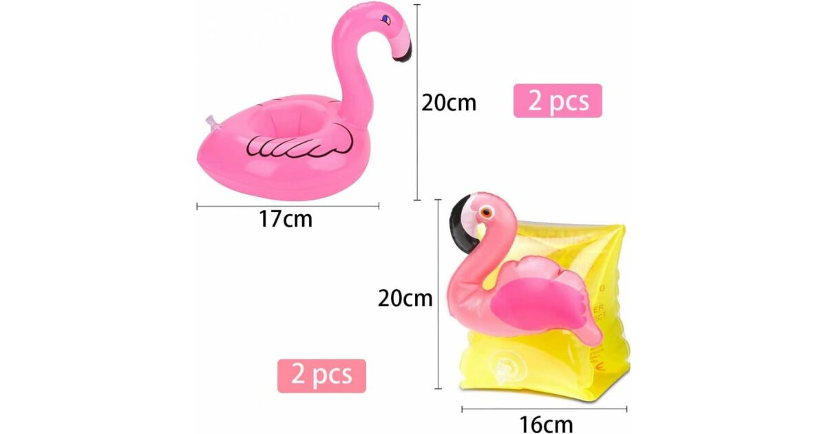 Acest set de 4 piese este completarea perfectă pentru petrecerile la piscină, la plajă sau chiar pentru o adunare în grădină. Setul include 2 suporturi pentru băuturi în formă de flamingo și 2 aripioare de înot cu model flamingo.