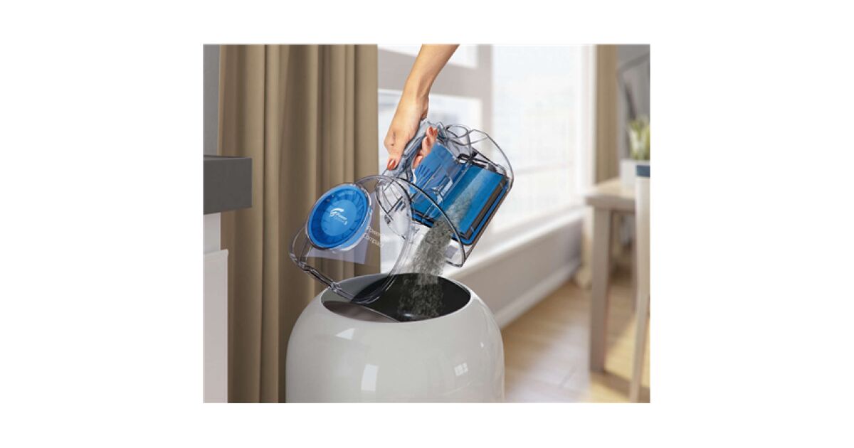- Golire ușoară: Golirea igienică a recipientului de praf cu o singură mână.