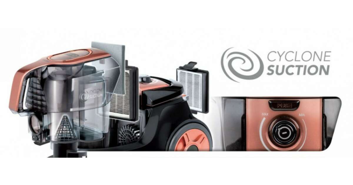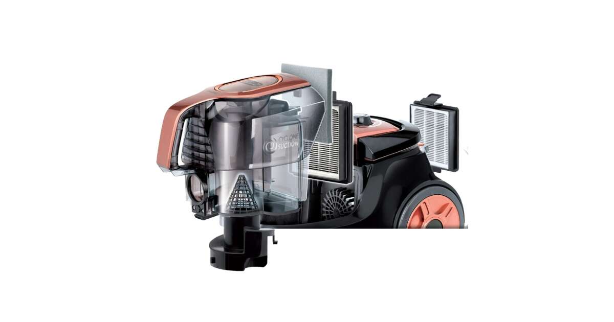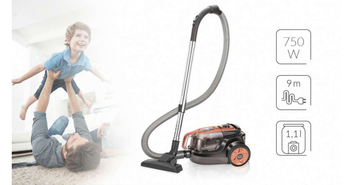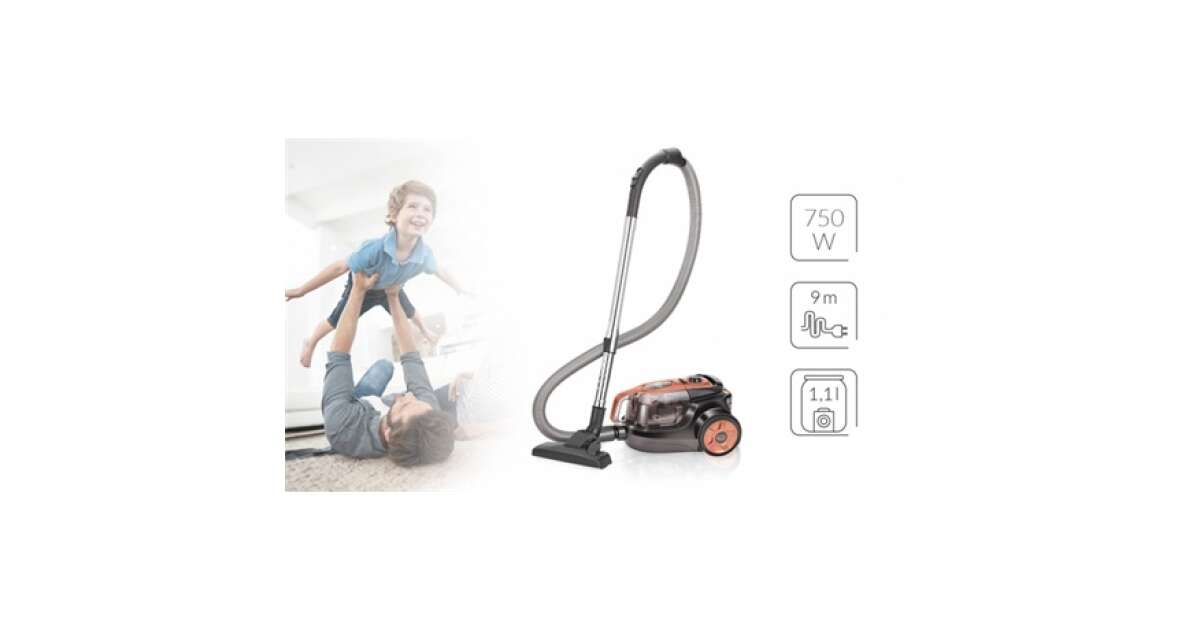 Aspirator fara sac MPM MOD-25, 1.1 l, 750 W, 2 filtre HEPA 13, tehnologie de aspirare CYCLONE, tub telescopic metalic, reglarea puterii de aspirare, Negru/Portocaliu (MOD-25) Descriere