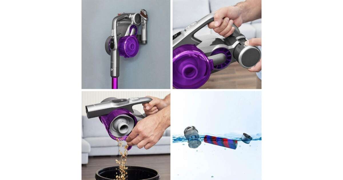 Aspirator vertical Jimmy JV85 PRO, putere 550W, autonomie 70 de minute, 0.6L, acumulator interschimbabil, tub flexibil pentru aspirarea cu usurinta a zonelor joase, display LED, violet/argintiu (JIMMY JV85 Pro) (JV85 PRO)