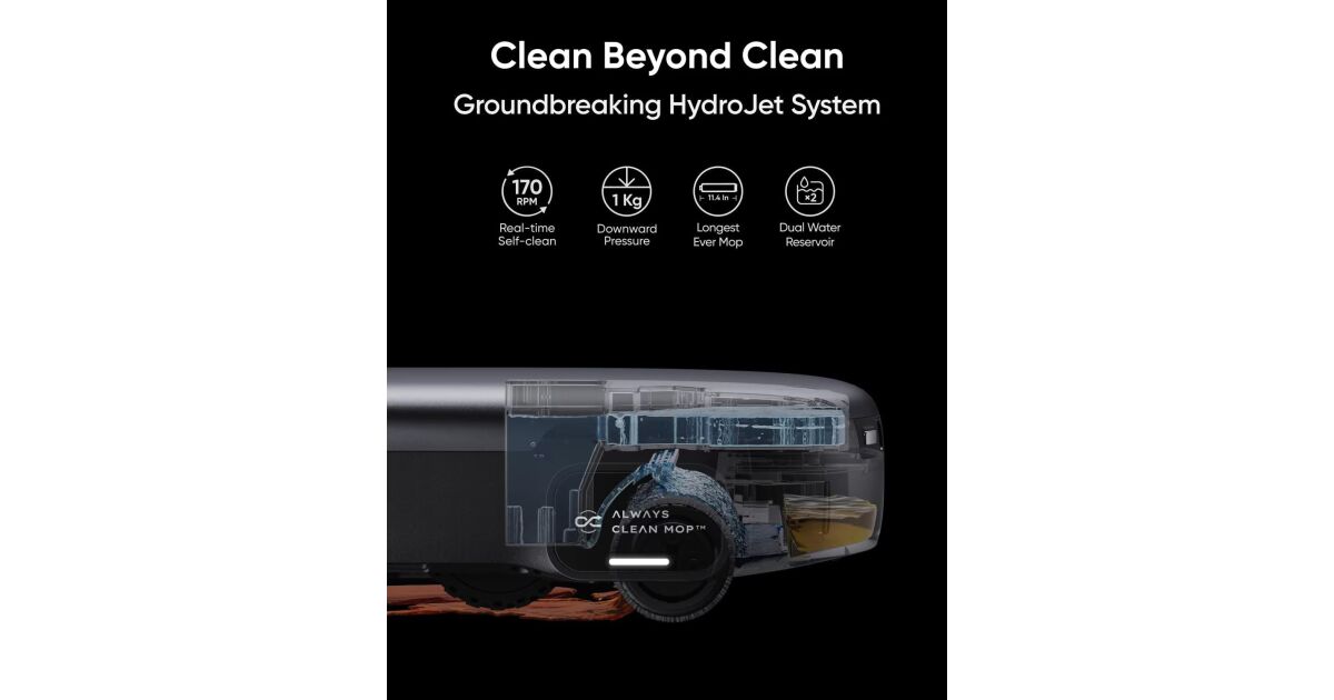 - Sistem HydroJet: Mopul Always Clean Combo și rezervorul dublu de apă umplut cu apă ozonată asigură o curățare în timp real, cu o viteză de 170 rpm. Îndepărtează chiar și murdăria invizibilă.💧