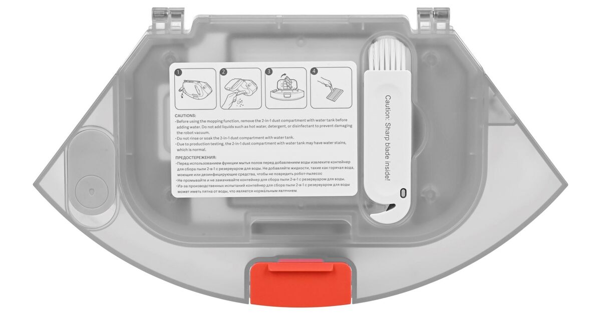 Conținutul pachetului: Robot aspirator, perie principală, rezervor 2 în 1 praf și apă, perie laterală, cadru perie principală, lavetă de șters, suport lavetă, stație de încărcare, cablu de alimentare, unealtă de curățare, manual de utilizare.