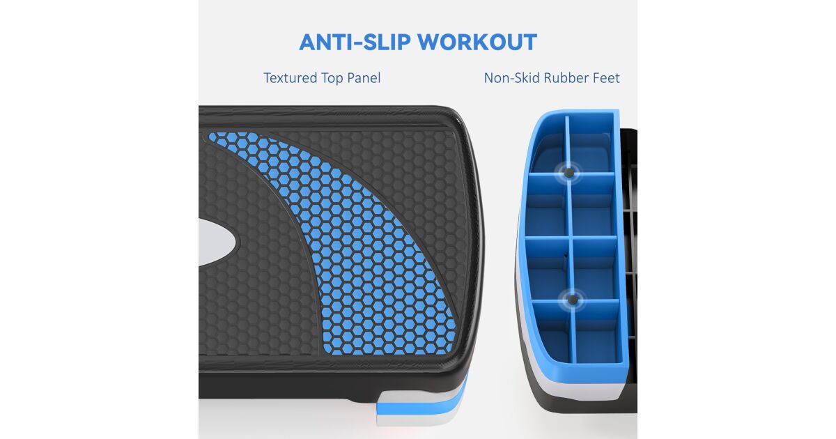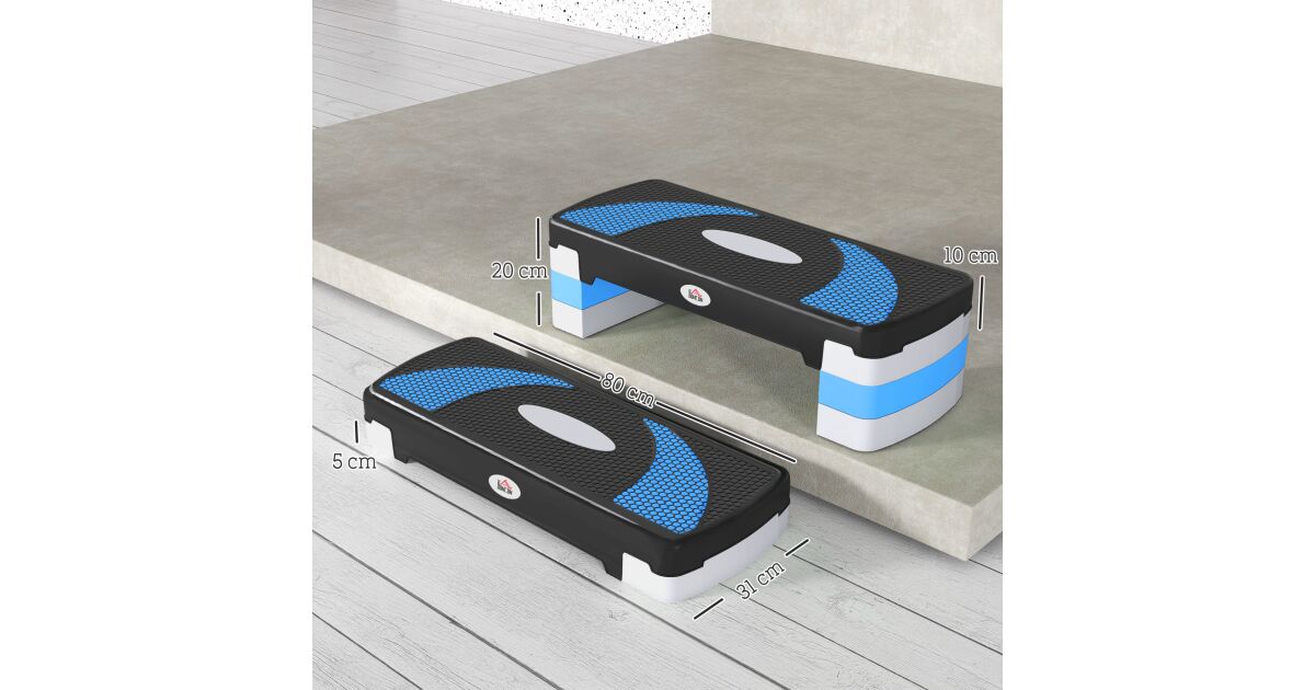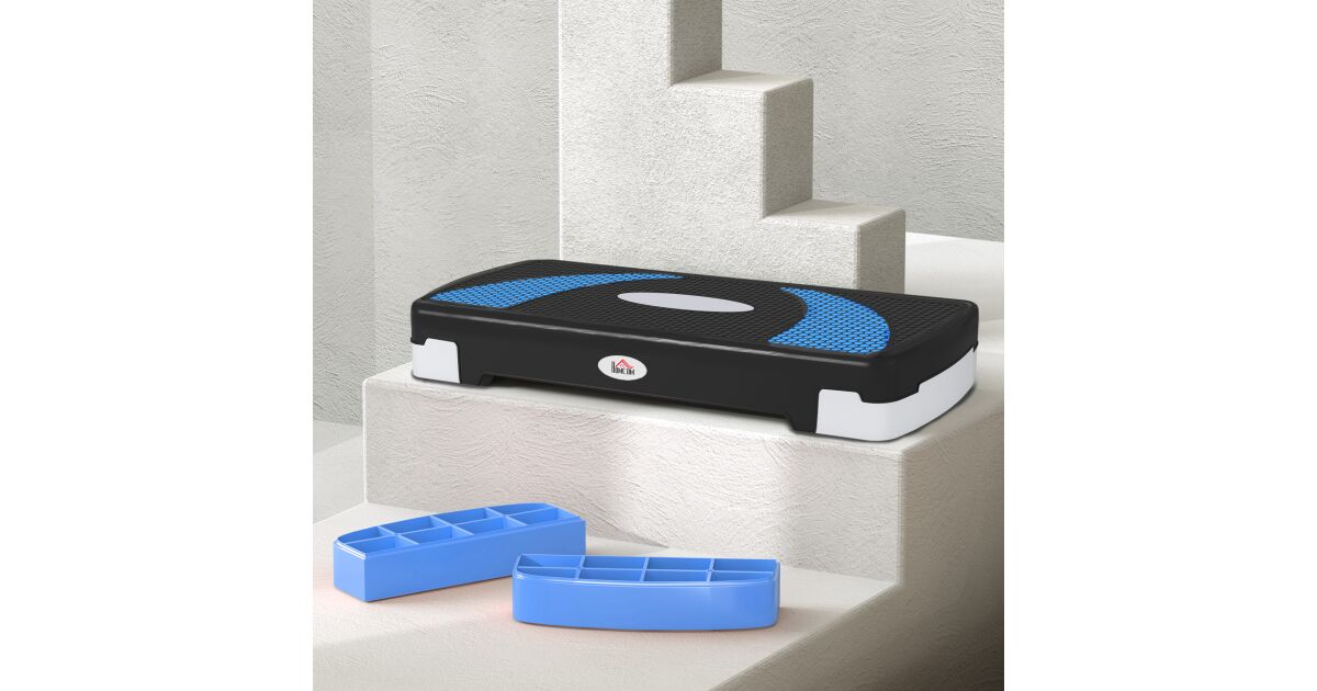 HOMCOM Stepper Fitness Reglabil pentru Aerobic pe 3 Înălțimi de 10-15-20 cm, Albastru și Negru Descriere
