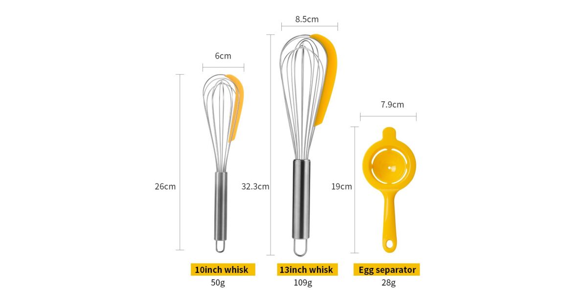 -Set 3 ustensile pentru bucatarie KipHome, 2 teluri, un separator oua, inox/silicon, Galben Descriere