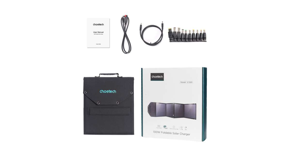 -Choetech SC009-V2 încărcător solar pliabil 100W USB-C, 2xUSB-A PD QC negru Descriere